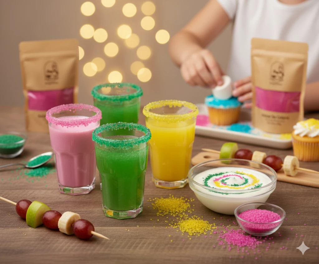 Recomendaciones y Usos Repostería Fina: Decoración de galletas, pasteles, cupcakes, muffins y donas. Bebidas y Coctelería: El aliado perfecto para escarchar copas de micheladas y margaritas. Algodón de Azúcar: Su granulometría permite un fundido parejo y colores intensos. Uso Alternativo: Mézclalo con perlas de azúcar para crear decoraciones temáticas exclusivas. Tip Profesional: No refrigerar ni aplicar sobre masas muy húmedas que no se consuman de inmediato para preservar el brillo y la crocancia. Cierre y Datos de Facturación Para su Factura Electrónica, por favor envíenos tras su compra por mensaje interno: Nombre/Razón Social | 2. NIT/Cédula | 3. Correo electrónico | 4. Dirección y Ciudad. ¡Suma color a tu marca con EL INGREDIENTE!